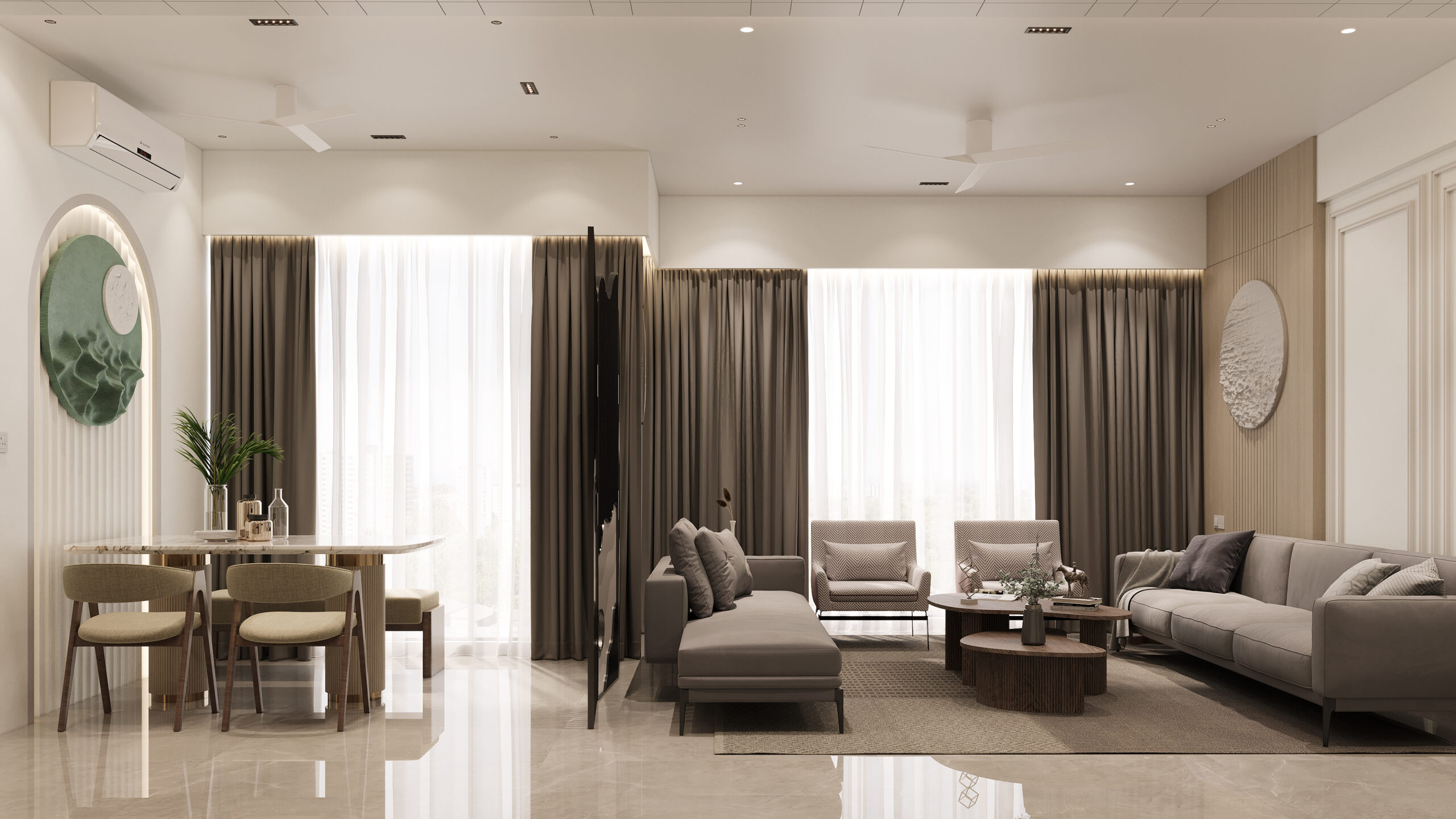 Contemporary 3BHK design with functional layouts